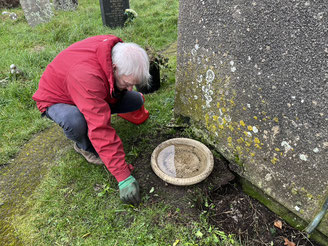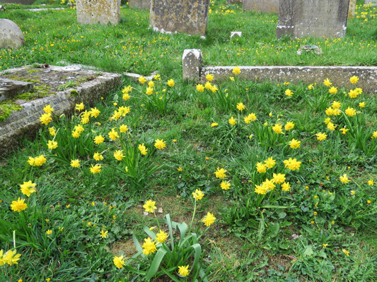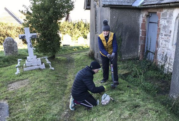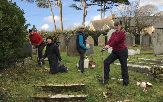 The first phase of work in the churchyard has started. A mixture of 1800 narcissus bulbs are being planted along the edges of the main path.